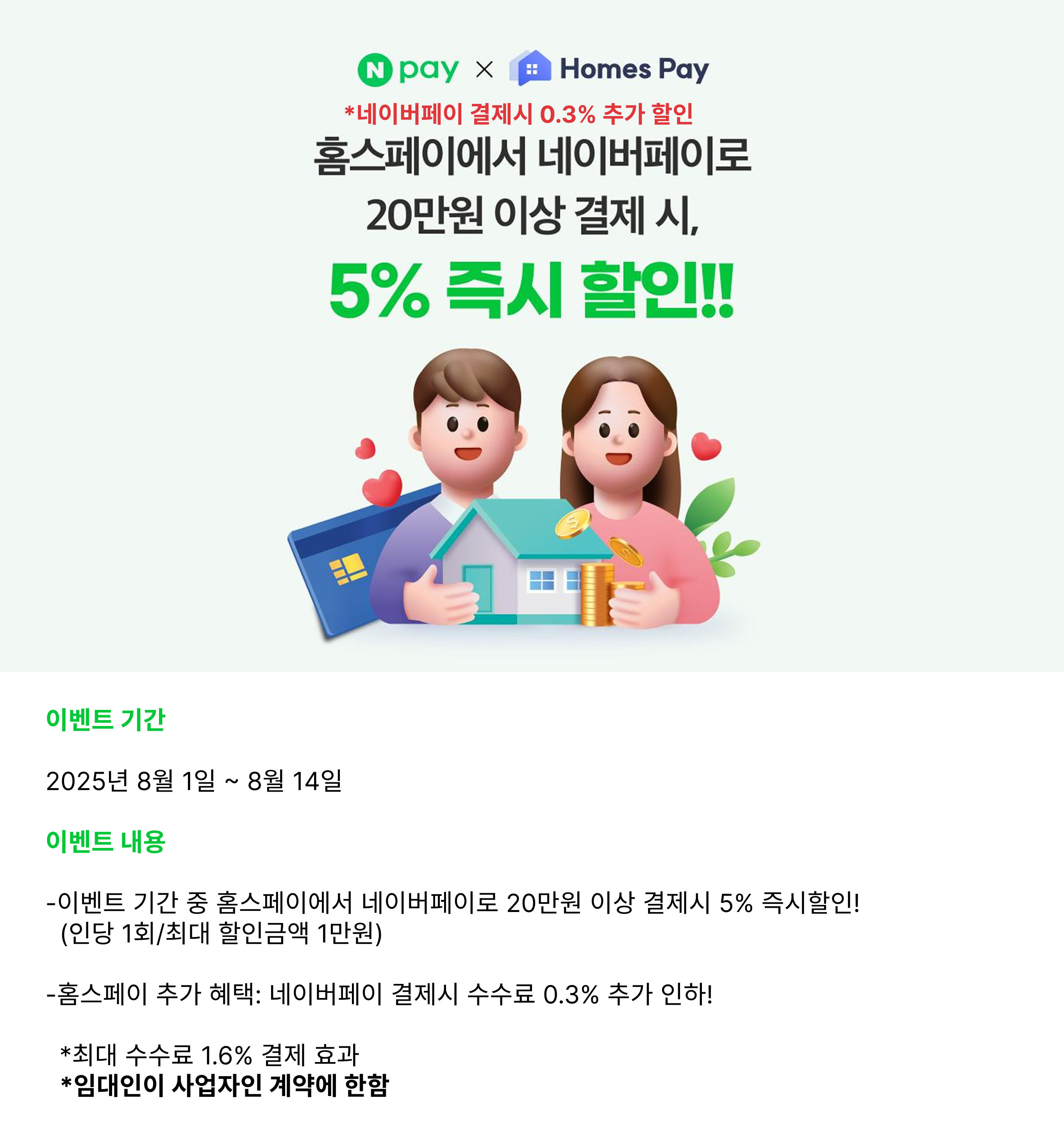 월세·관리비 결제대행 서비스인 홈스페이가 오는 7일부터 네이버페이와 손잡고 결제 폭을 확대한다...