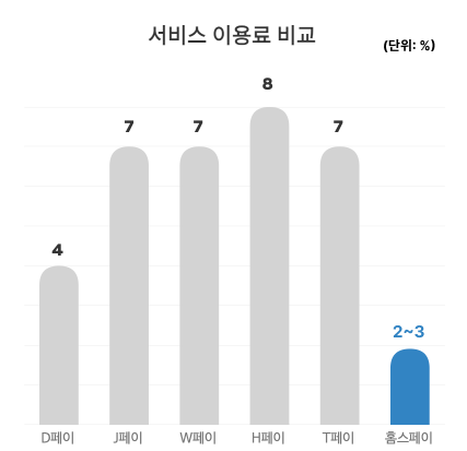 홈스페이 수수료는 업계 최저 (2%~3%)로 책정되어 있는데, 이는 여신전문금융업법에 따라 카드깡 같은 변칙 운영을 못하게 하여 위험성을 낮추고 마진을 최대한 줄였기 때문입니다.